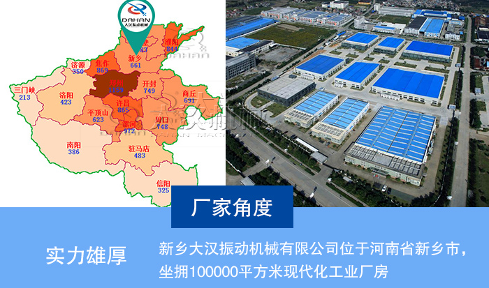 新鄉(xiāng)大漢振動機械有限公司位于河南省新鄉(xiāng)市,坐擁100000平方米現(xiàn)代化工業(yè)廠房,各種焊接設備能夠達到300余臺,而且,公司技術人員有上百名,廠家實力頗為雄厚。