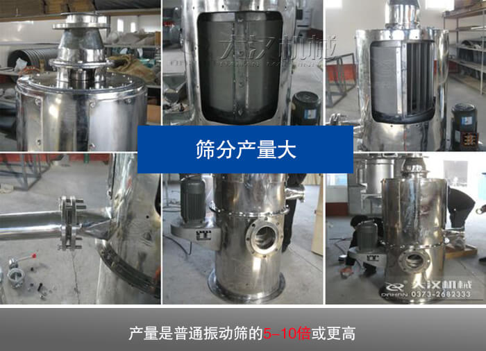 氣流篩般適合脈沖除塵器,風機等配套使用,可長時間連續(xù)運行,能夠保證物料篩分產(chǎn)量更大,其產(chǎn)量是普通振動篩的5-10倍或更高。