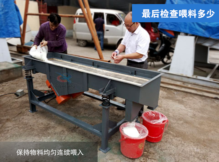 ④振動篩在喂料不均勻時,無法受到均勻的激振力作用,因此也會導(dǎo)致直線振動篩篩面物料流動異常的現(xiàn)象。保持物料均勻連續(xù)喂入,喂料不可過多過少導(dǎo)致篩箱負(fù)荷不平衡。