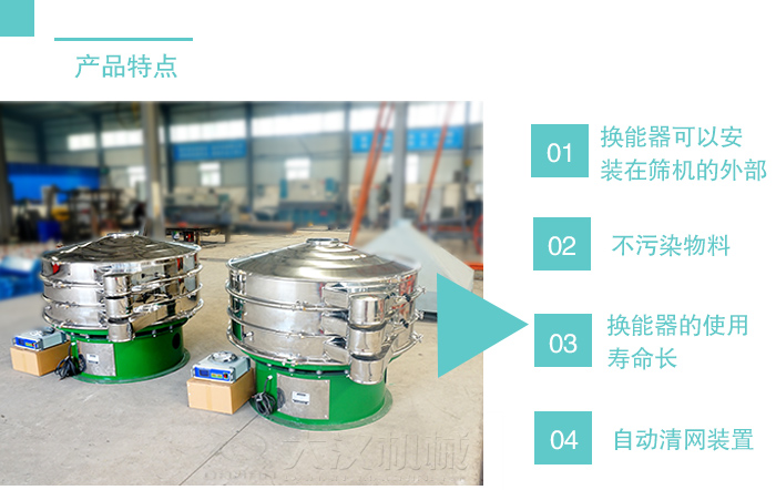 隨著不斷有客戶反映物料溫度過高就很容易燒壞換能器,經(jīng)我公司技術(shù)部門反復(fù)試驗(yàn),外置式換能器由此誕生,所謂外置式換能器就是將以往標(biāo)準(zhǔn)型超聲波振動篩的內(nèi)置式換能器安裝在篩機(jī)的外部,不與物料接觸,同時(shí)也不污染物料。通過改進(jìn)專用網(wǎng)架,換能器可以安裝在篩機(jī)的外部,這樣可以有效避免換能器直接接觸高溫物料,大大延長換能器的使用壽命。