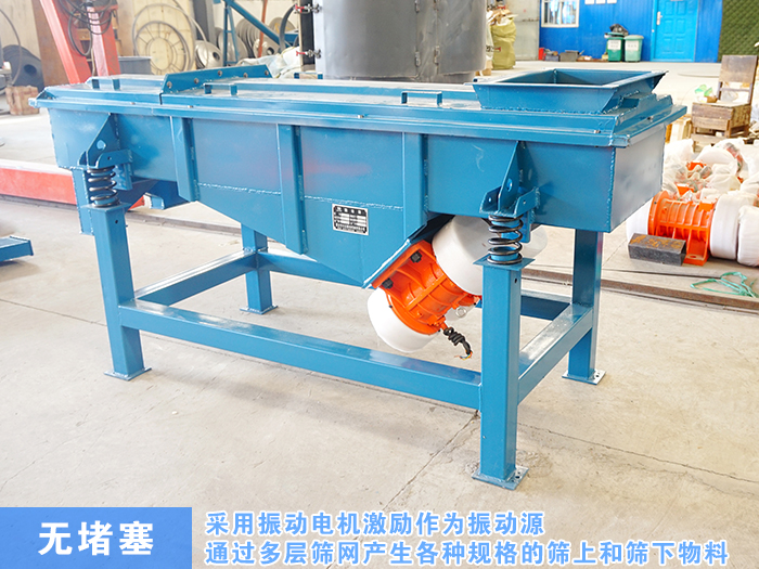 直線振動篩采用振動電機激勵作為振動源,使物料在篩網(wǎng)上拋起,同時直線前進。物料從進料器均勻進入篩選機進料口,通過多層篩網(wǎng)產(chǎn)生各種規(guī)格的篩上和篩下物料,分別從各自的出口排出,不存在堵塞現(xiàn)象,產(chǎn)量高。