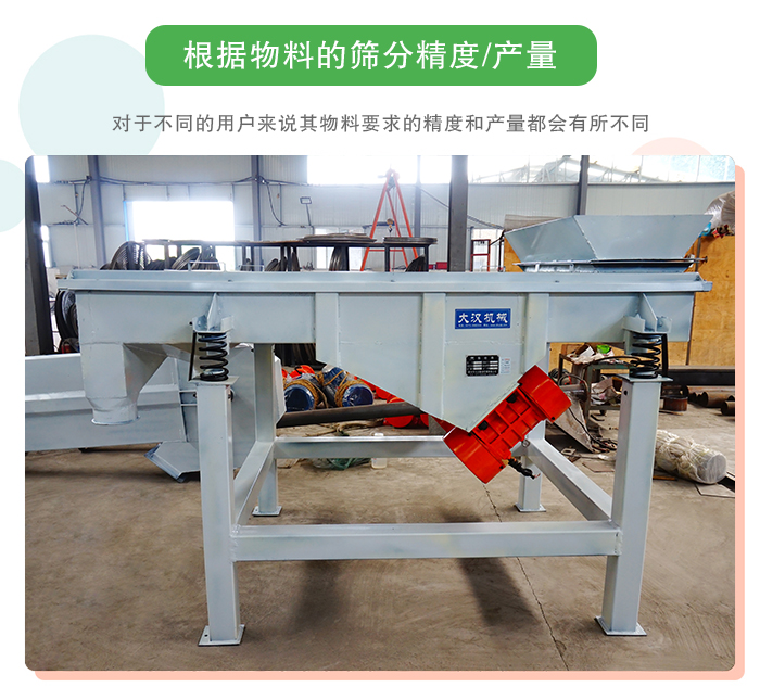 對(duì)于不同的用戶來說其物料要求的精度和產(chǎn)量都會(huì)有所不同,若想要篩分的粗糙點(diǎn)就可以選擇一些普通的振動(dòng)篩,要是想要篩分的有多又精細(xì),就要對(duì)直線振動(dòng)篩長和寬進(jìn)行設(shè)計(jì)。直線振動(dòng)篩越長其篩分精度就越高,直線振動(dòng)篩的寬度越寬其篩分的產(chǎn)量就越高,所以確定好直線振動(dòng)篩的產(chǎn)量和精度。