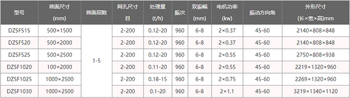 直線振動(dòng)篩是一種產(chǎn)量大、效率高的篩分設(shè)備,該設(shè)備常見型號(hào)有DZSF520(寬500mm,長2000mm)、DZSF525、DZSF530、DZSF1020、DZSF1025、DZSF1030那么對(duì)于這么多型號(hào)我們?cè)撊绾芜x擇呢?