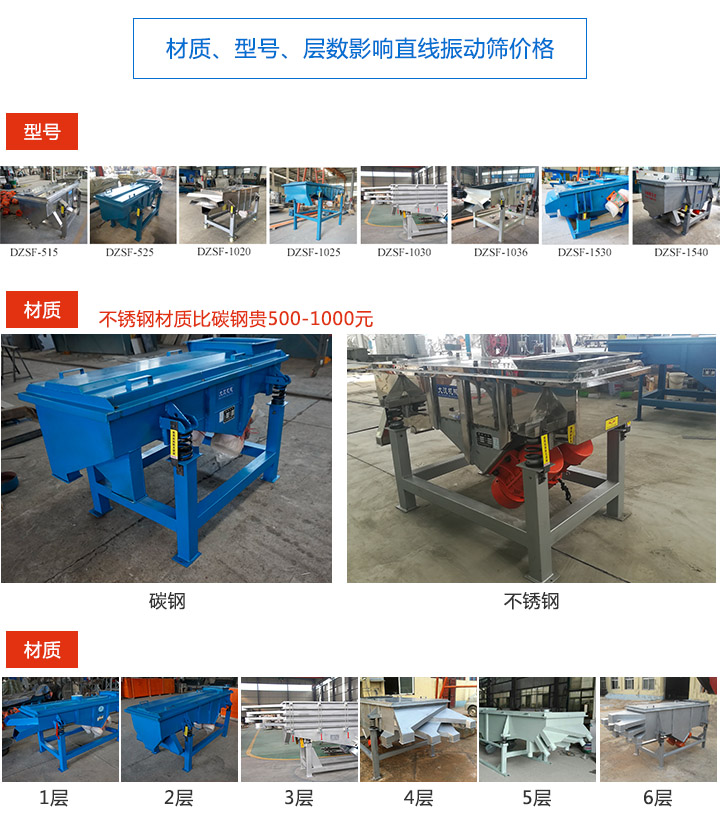 3、另外,直線振動(dòng)篩可安裝1-6層篩網(wǎng),層數(shù)越高,價(jià)格會(huì)越貴。